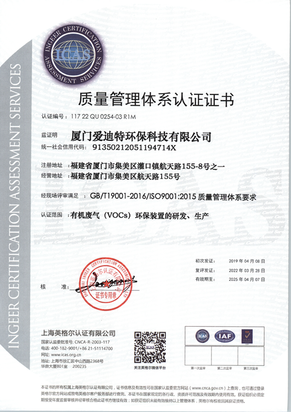 獲得質(zhì)量管理體系要求認(rèn)證證書